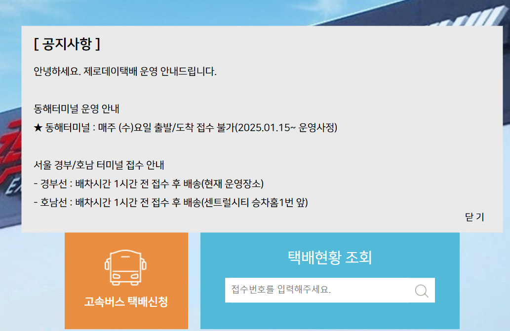 - 가까운 고속버스 터미널 화물 접수처 방문