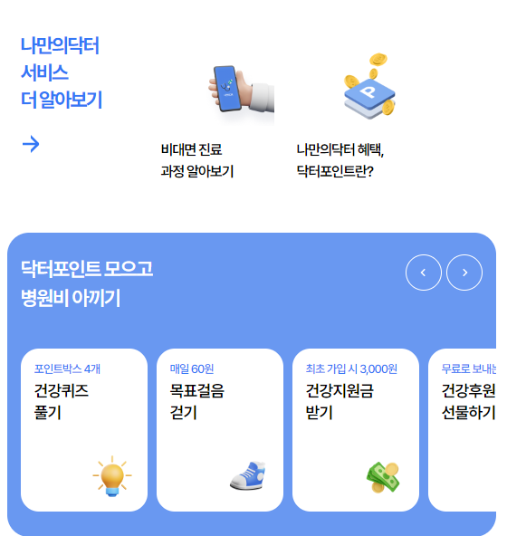 닥터포인트는 나만의 닥터 어플에서 건강퀴즈나 다양한 건강관리 기능을 이용하면서 받은 포인트박스를 열어서 모을 수 있습니다.