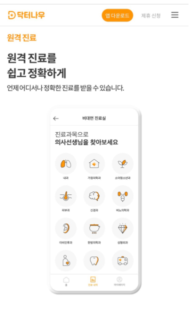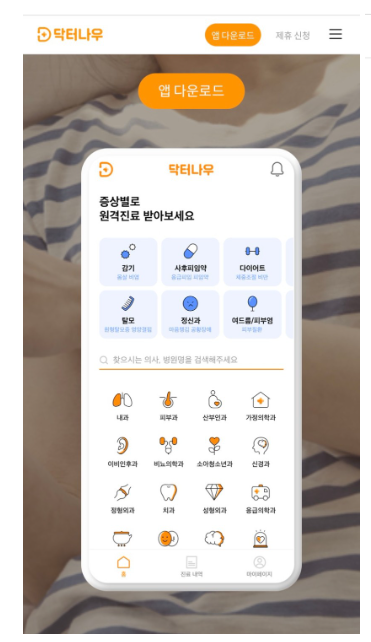 ● 메인 화면 비대면 진료 탭에서 증상이나 과목 선택